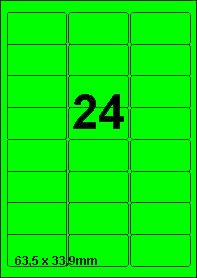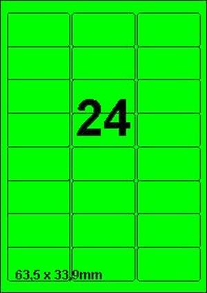 DBS etiketten 63,5x33,9 mm, 24 per blad, fluo groen, 200 vel
