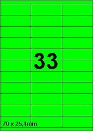 DBS etiketten 70 x 25,4 mm, 33 per blad, fluo groen, 200 vel