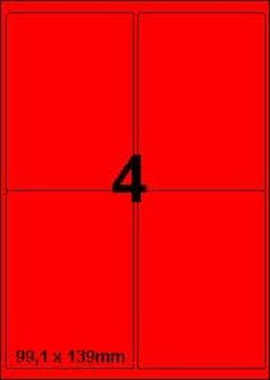 DBS etiketten 99,1 x 139 mm, 4 per blad, fluo rood, 200 vel