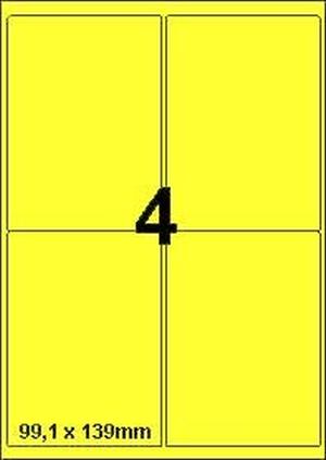 DBS etiketten 99,1 x 139 mm, 4 per blad, geel, 200 vel