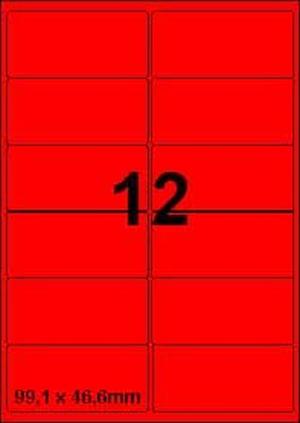 DBS etiketten 99,1 x 46,6 mm, 12 per blad, fluo rood,200 vel