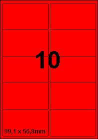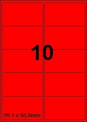 DBS etiketten 99,1 x 56,8 mm, 10 per blad, fluo rood,200 vel