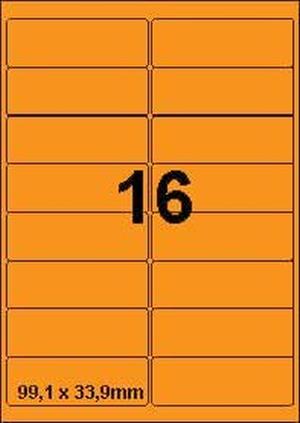 DBS etiketten 99,1x33,9mm, 16 per blad, fluo oranje, 200 vel