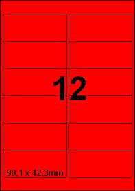 DBS etiketten 99,1x42,3 mm, 12 per blad, fluo rood,200 vel