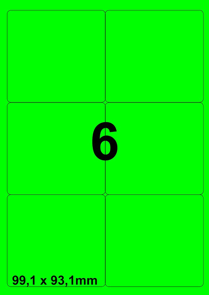 DBS etiketten 99,1x93,1mm, 6 per blad, fluo groen, 200 vel