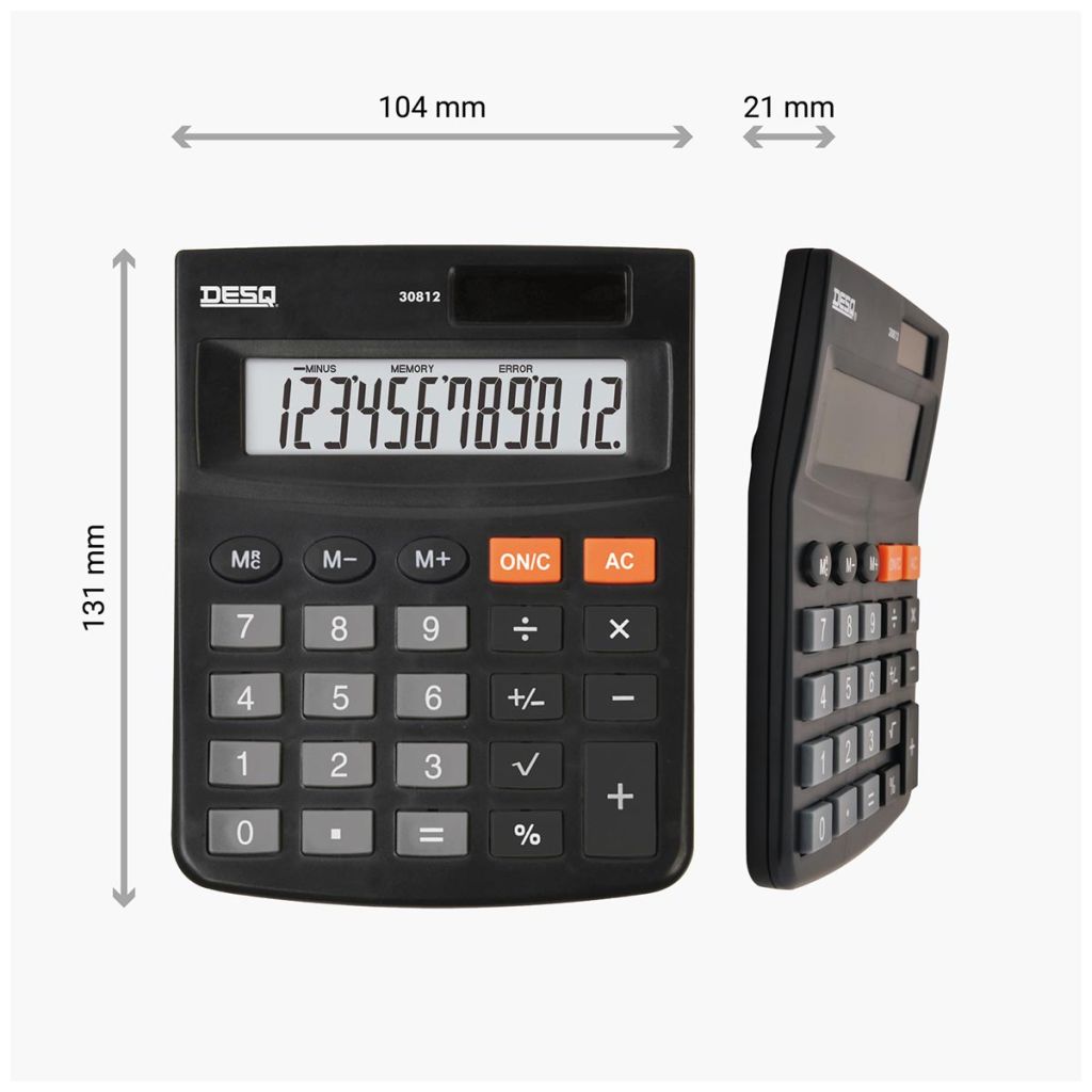- Aantal cijfers: 12 % - toets Toets voor wijziging plus-/minteken (+/-) Vierkantswortel Onafhankelijk geheugen Ft 2,1 x 10,4 x 13,1 cm (h x b x d) Werkt op 1 LR54/LR1130 batterij (meegeleverd) Kleur: zwart