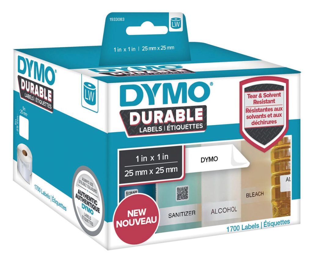 - DYMO LW duurzame labels zijn uitgerust met industriële lijm en een stevige deklaag die slijtage en loskomen door hitte, vochtigheid of oplosmiddelen voorkomt