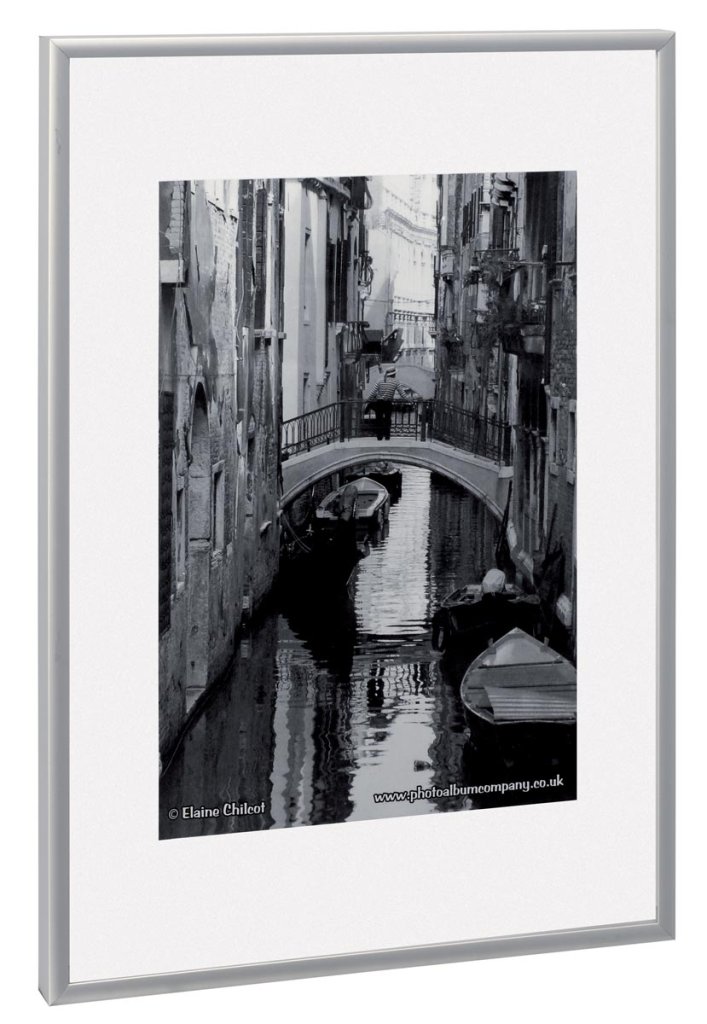 - Met aluminium rand, dikte 20 mm Voorzijde in transparant polystyreen Zowel horizontaal als verticaal te gebruiken Te bevestigingen aan de muur zilver, ft A2 (60 x 42 cm, h x b)
