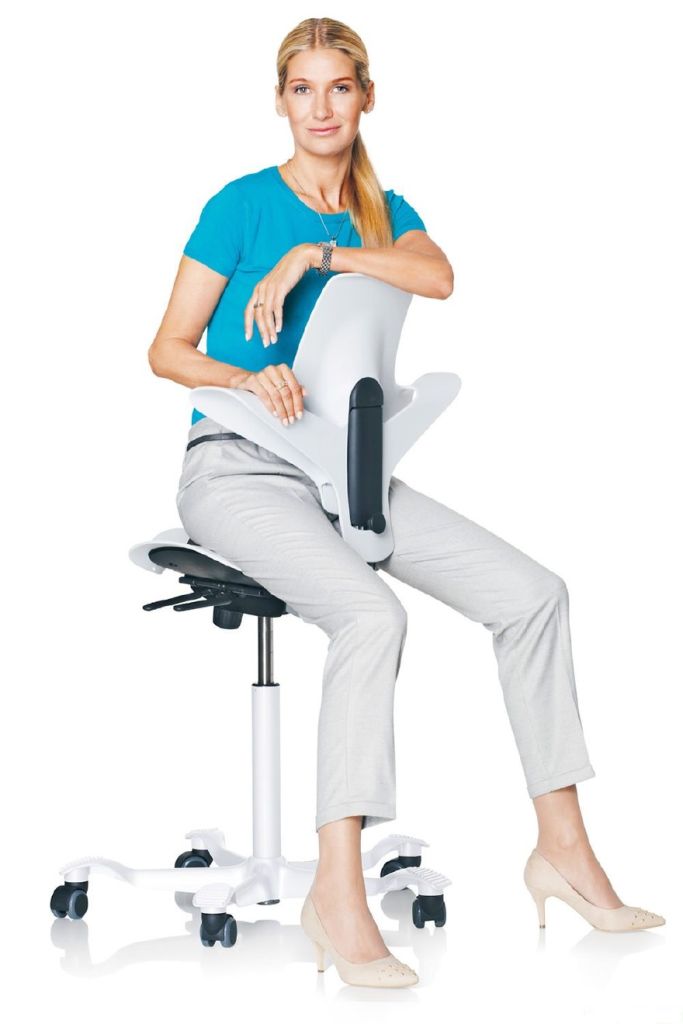 - “Zadelstoel” – ontworpen met de dynamische zithouding van een ruiter voor ogen
