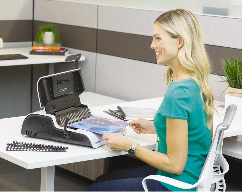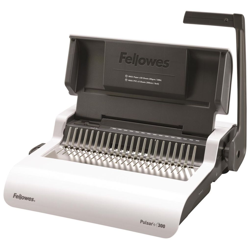 De Pulsar+ 300 is een inbindmachine voor plastic bindruggen voor regelmatig gebruik op kantoor. De Pulsar+ 300 heeft een brede hendel voor moeiteloos ponsen tot 17 vel tegelijkertijd en een inbindcapaciteit van 300 vel. Zoals bij alle Fellowes inbindmachines voor plastic bindruggen beschikt ook de Pulsar+ 300 over een bindrughouder in een helling waardoor het inhangen eenvoudig verloopt. Verticaal ponsen en een verstelbare paginageleider verzekert constant en precies ponsen. De opberglade heeft een gepatenteerde bindrug- en document formaatwijzer waarmee u altijd de juiste toebehoren selecteert. De openspringende snipperlade voorkomt opstoppingen. Geschikt voor bindruggen van maximaal 38mm dik. Inclusief starterskit voor het binden van 10 documenten en 2 jaar garantie.