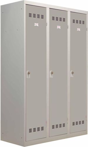 Industriële garderobekast vuile industrie, 3 deuren, ft 180 x 120 cm, grijs