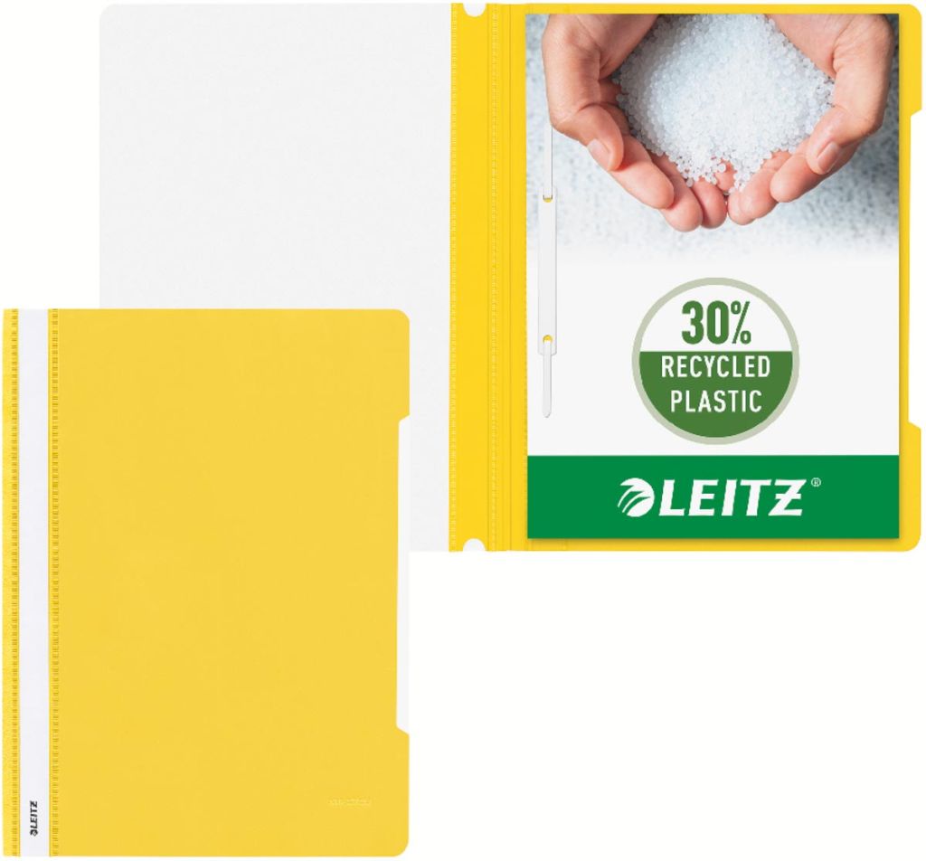- 100% recyclebaar (metalen mechanisme moet van het plastic worden gescheiden) Hoogwaardige materialen zorgen voor een product dat lang meegaat en helpen de grondstoffen van de aarde te sparen Achterkant gekleurd, voorkant transparant Titelstrook over de volledige lengte, met uitsnijding aan de boven- en onderkant voor makkelijke verwijdering Uitsparing aan de achterkant voor gemakkelijk openen Alleen etiket - geen verder verpakkingsafval geel, capaciteit: 60 x A4 (80 grams papier)