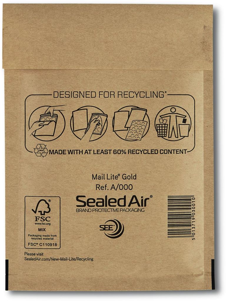 Mail Lite luchtkussenenveloppen, goud, A/000, 110 x 160 mm, doos van 200 stuks