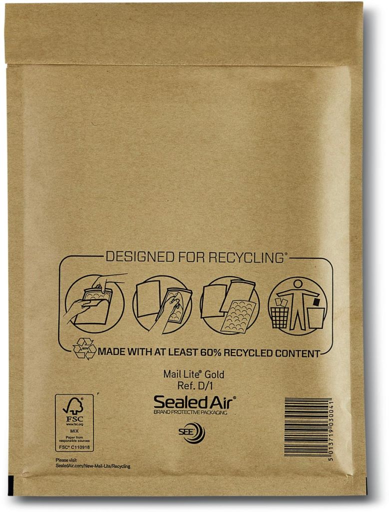 Mail Lite luchtkussenenveloppen, goud, D/1, 180 x 260 mm, doos van 200 stuks
