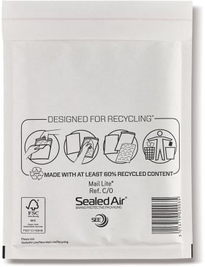 Mail Lite luchtkussenenveloppen, wit, C/0, 150 x 210 mm, doos van 100 stuks