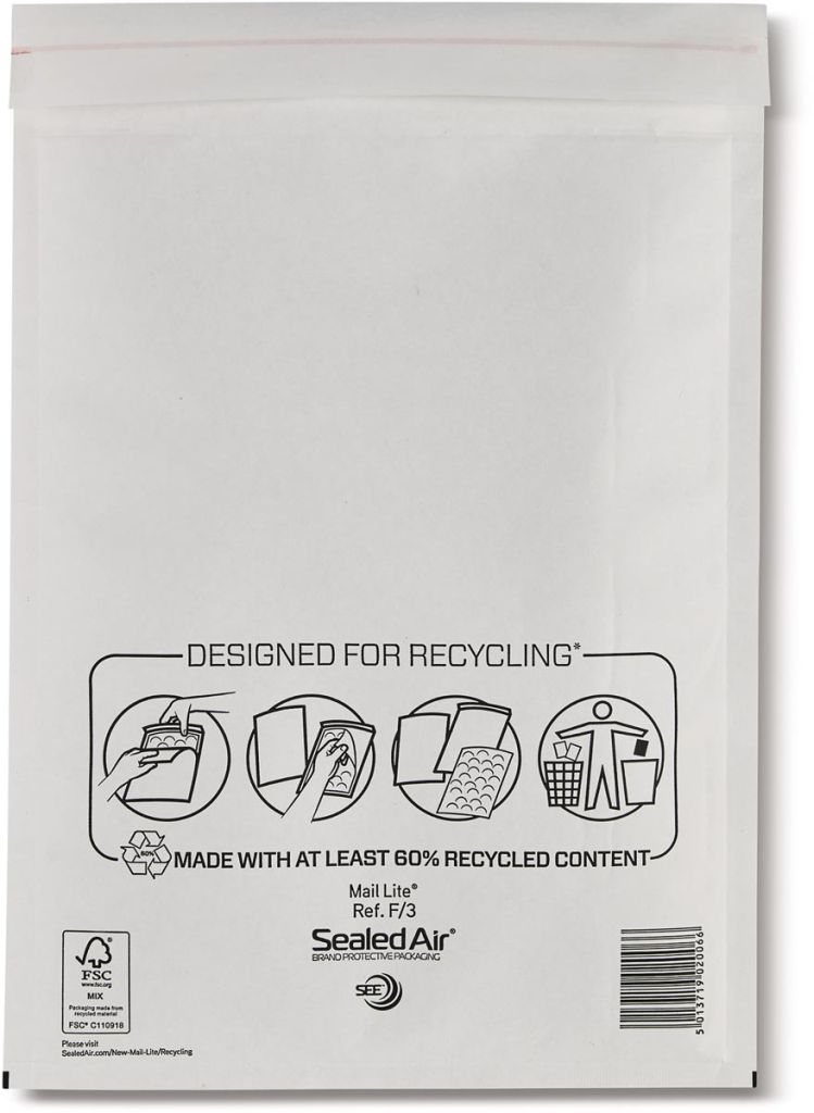 Mail Lite luchtkussenenveloppen, wit, F/3, 220 x 330 mm, doos van 50 stuks