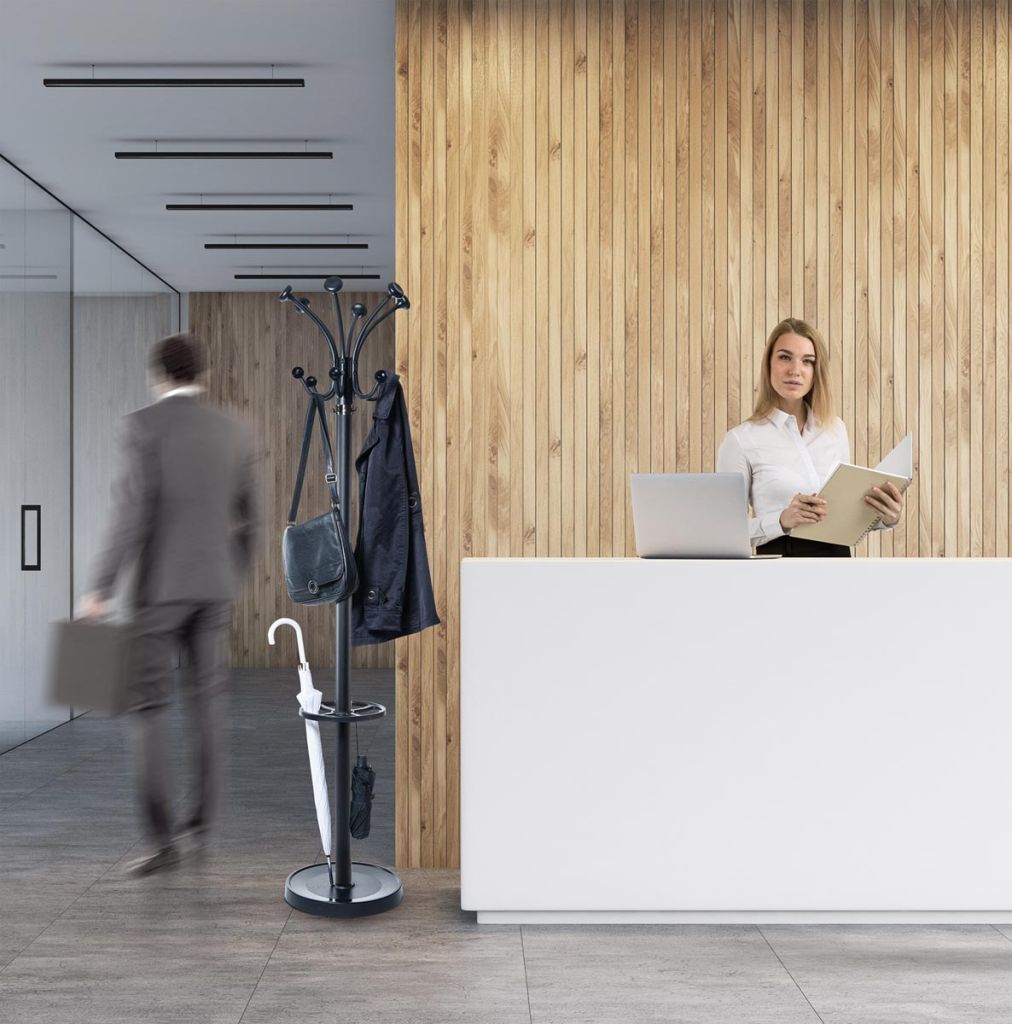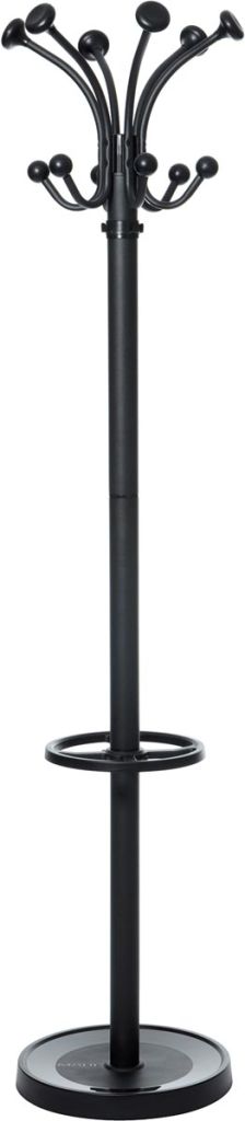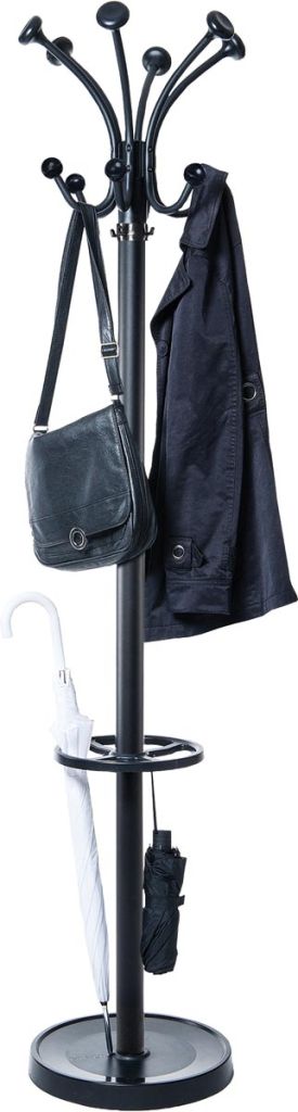 - geschikt voor jassen, hoeden, tassen en wat u nog meer wilt weghangen na binnenkomst van een ruimte.Poedercoat staal zorgt voor kleurvastheid en hard krasvast oppervlak Robuust en zeer stabiel Met parapluhouder Capaciteit: 8 paraplu's en 4 zakparaplu's Snelle en eenvoudige montage Hoogte: 176 cm Voet: diameter 36,5 cm Kleur: zwart RAL 9004
