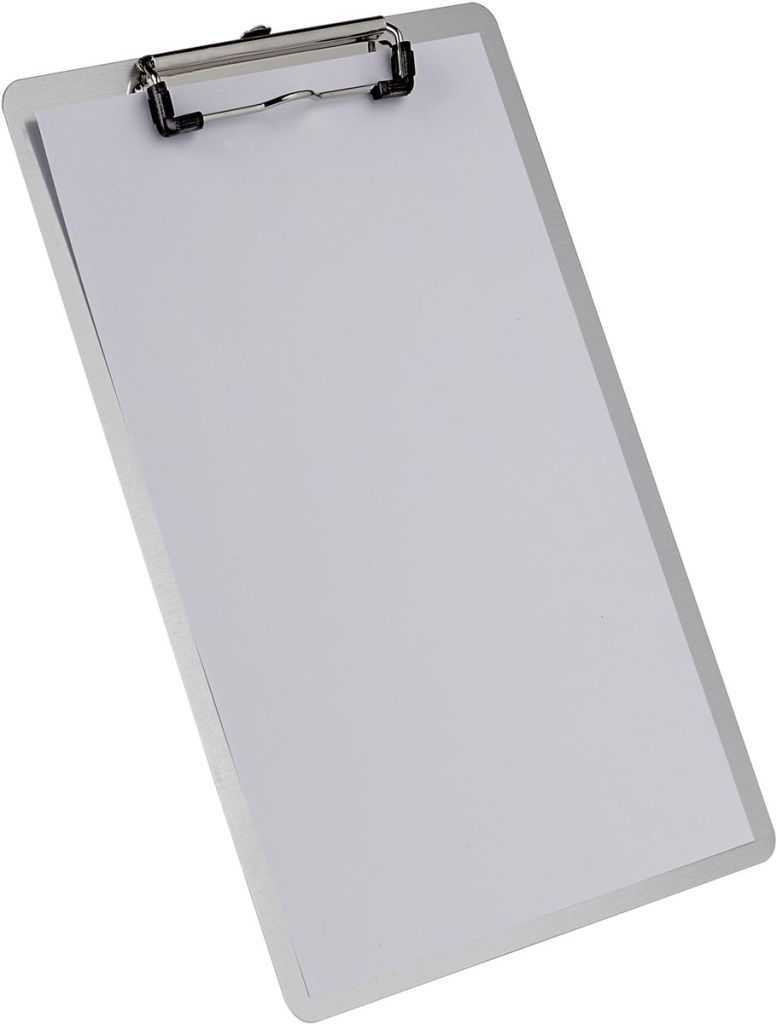 - Klembord aluminium A4 staand met verchroomde metalen vlakke klem, zilverkleurig