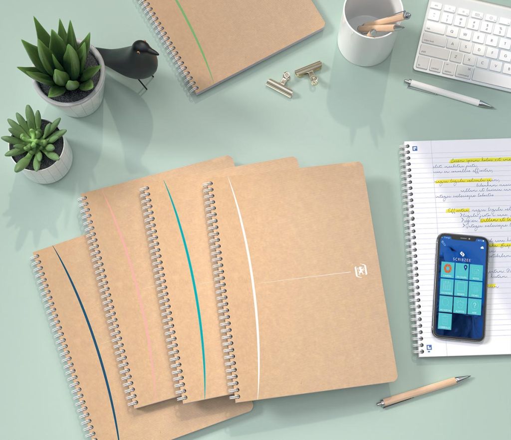 - Uit papier van 90 g/m² 180 bladzijden (90 vel) Soepele, flexibele kaft uit kraftkarton Met spiraalbinding Met dubbele kantlijn om belangrijke elementen op de pagina te noteren Speciaal ontworpen pagina's voor het organiseren van notities Met scanfunctie Compatibel met Scribzee app Certificaat: PEFC ft 21 x 29, 7 cm (A4), geruit 5 mm, geassorteerde kleuren: groen (Peacock Green), wit (Frosted White), roze (Quartz Pink), blauw (Cobalt Blue) en lichtgroen (Amazonite Green), keuze kleur niet mogelijk