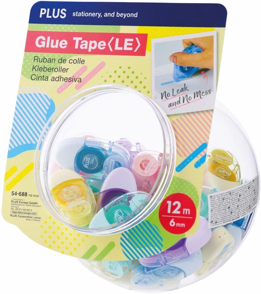 Plus lijmroller, 12 m x 6 mm, display van 30 stuks in geassorteerde kleuren