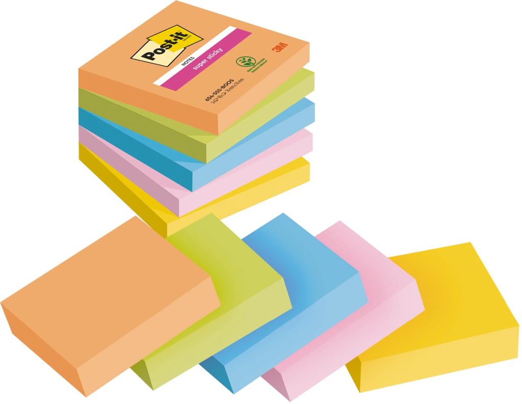 Post-it Super Sticky notes Boost, 90 vel, ft 76 x 76 mm, geassorteerde kleuren, pak van 5 blokken