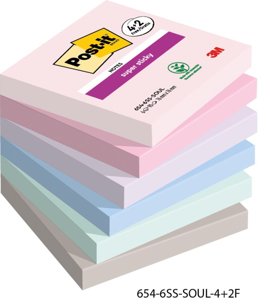 Post-it Super Sticky notes Soulful, 90 vel, ft 76 x 76 mm, 4 + 2 GRATIS