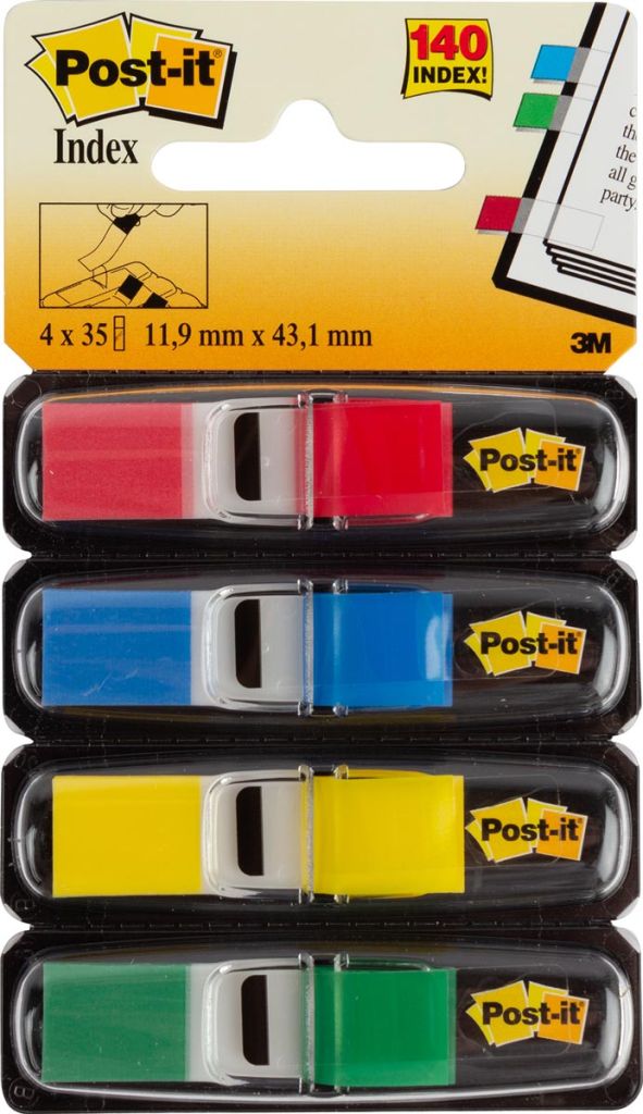 Post-it® Index Small rood, blauw, geel en groen