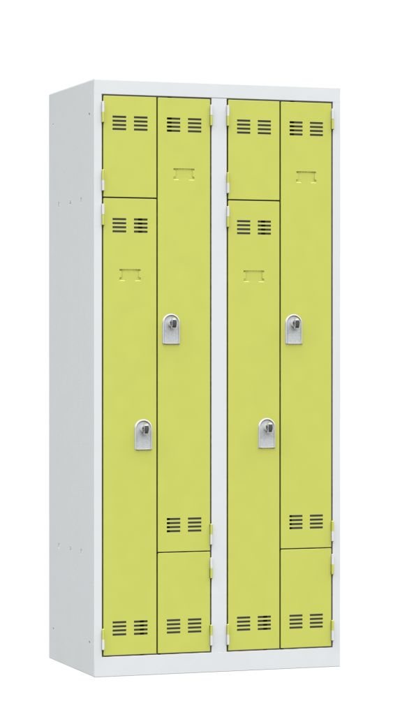 - Iedere gebruiker beschikt over 1 brede kast en 1 kledingkast met 1 kapstokhaak en een stang voor kleerhangers