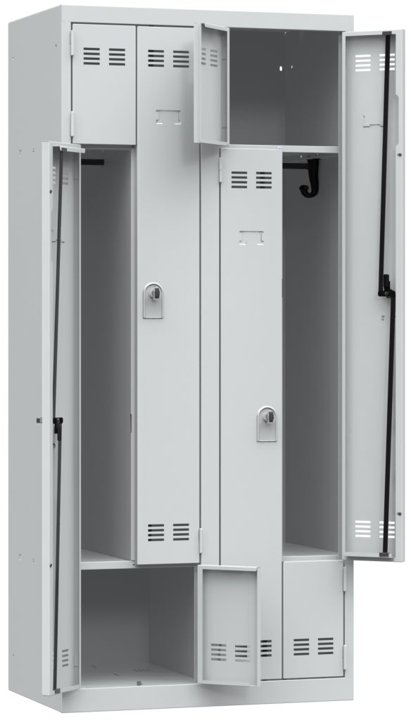 - Iedere gebruiker beschikt over 1 brede kast en 1 kledingkast met 1 kapstokhaak en een stang voor kleerhangers