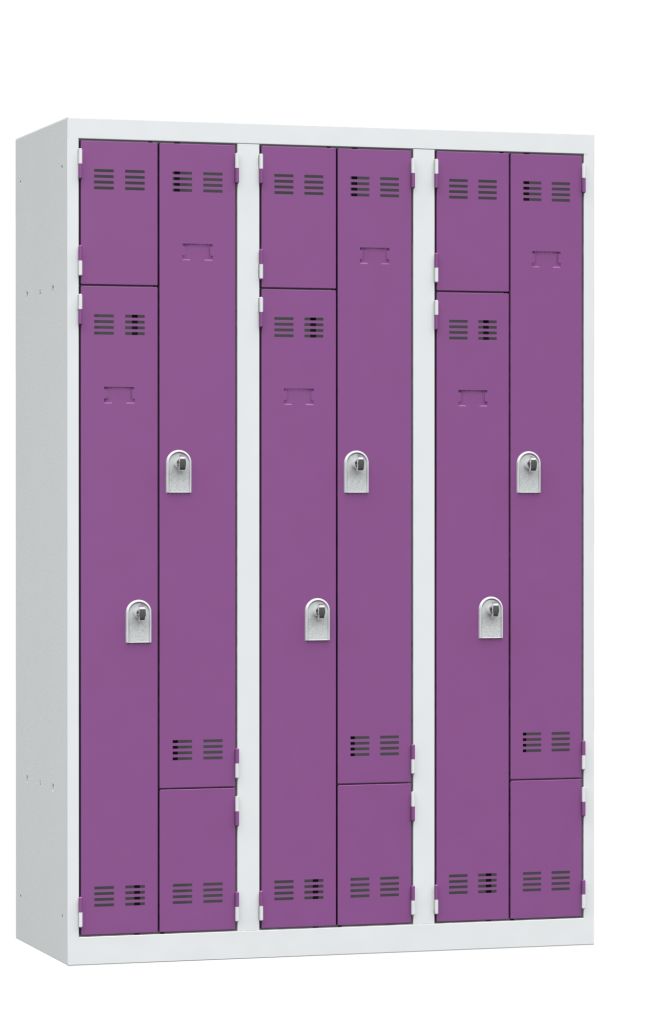 Ruimtebesparende monoblok garderobe, 3 kolom, 180 x 120 cm, paars