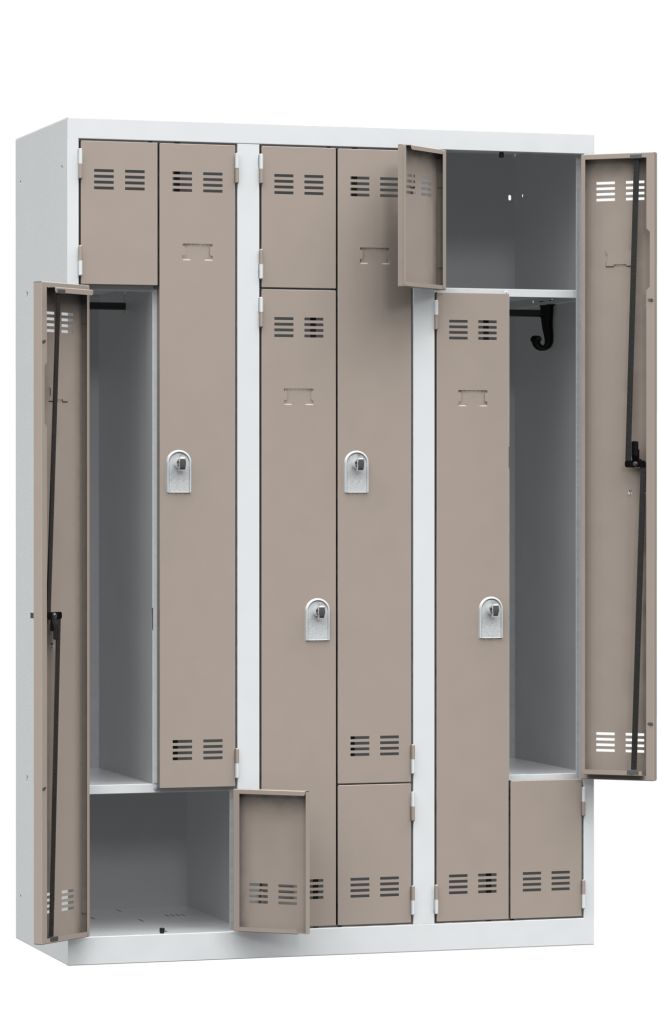 - Iedere gebruiker beschikt over 1 brede kast en 1 kledingkast met 1 kapstokhaak en een stang voor kleerhangers
