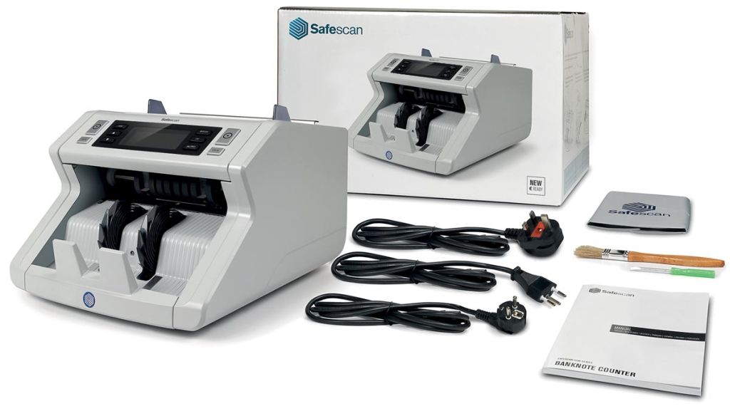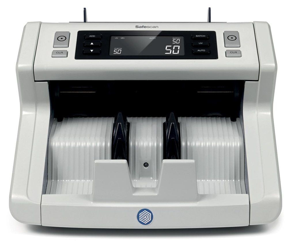 De Safescan 2250 is uitgerust met een geavanceerd controle- en waarschuwingssysteem dat een alarmsignaal geeft en de machine stopt als eenvals biljet gedetecteerd wordt. De telresultaten duidelijk afgebeeld op het grote lcd-scherm van de machine. De Safescan 2250 telt met een snelheid van 1.000 biljetten per minuut, beschikt over een autostart/autostop functie, maakt optellen en afpassen mogelijk en is geschikt voor alle valuta. Ft 29,2 x 24,6 x 17,8 cm. Gewicht: 7 kg. Voltage: 220V. CE gecertificeerd. Garantie: 3 jaar. biljettelmachine + 3-voudige detectie - UV, MG, IR