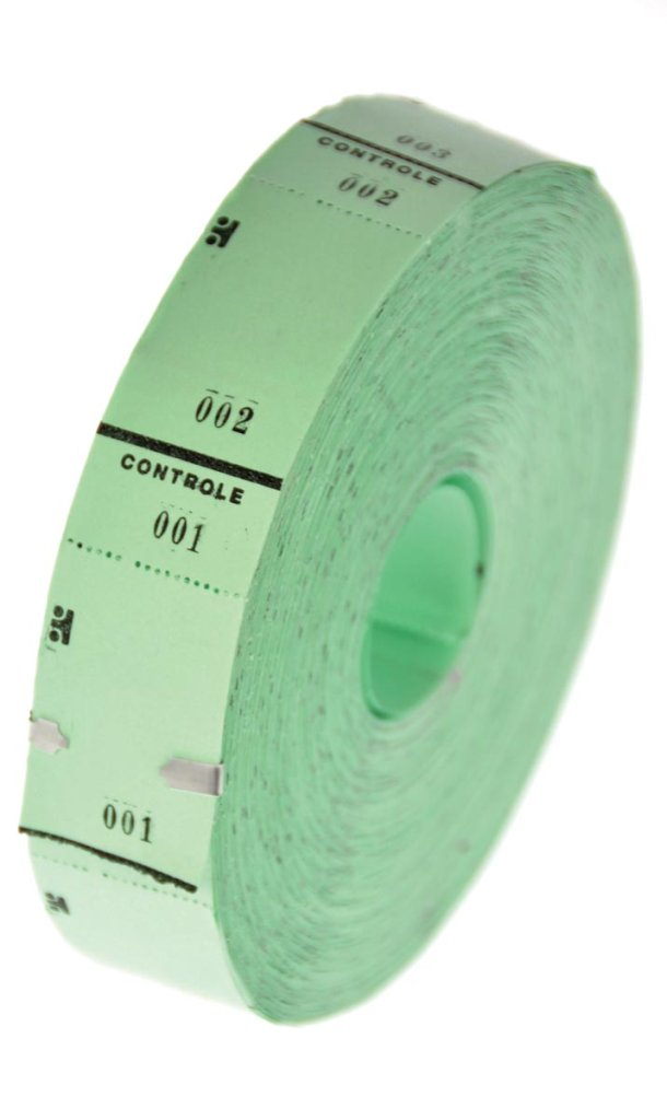 - Rol met 1.000 tickets, ft 65 x 30 mm, met controlestrookje