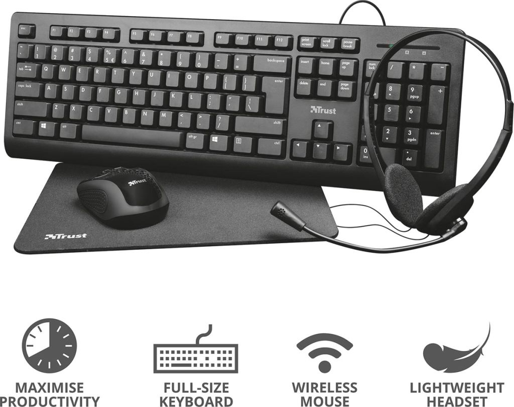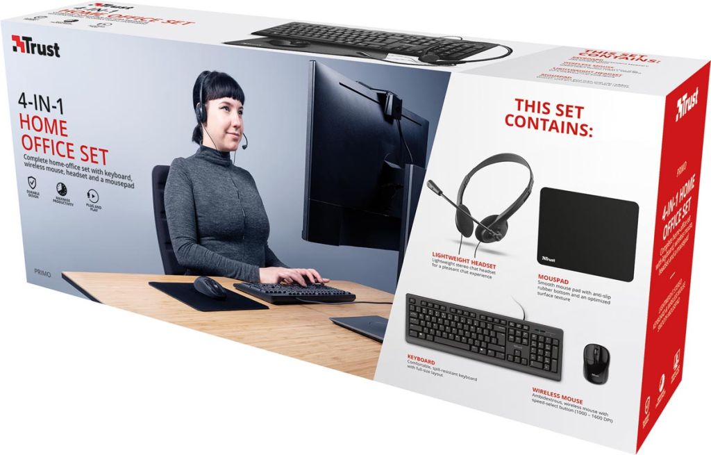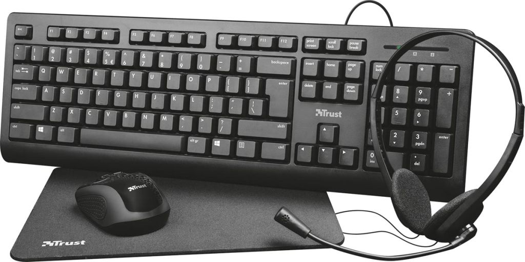 Trust Primo 4-in-1 Home Office Set met headset, toetsenbord (qwerty), muis en muismat