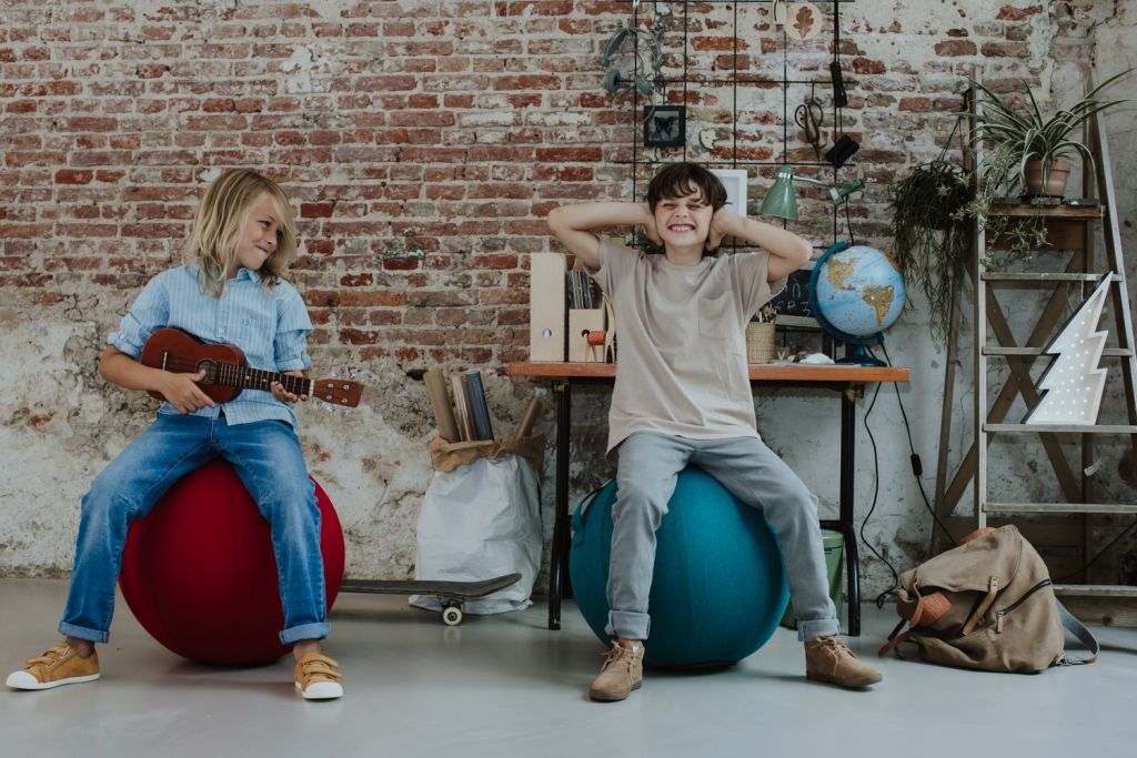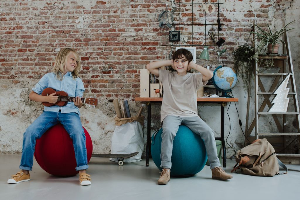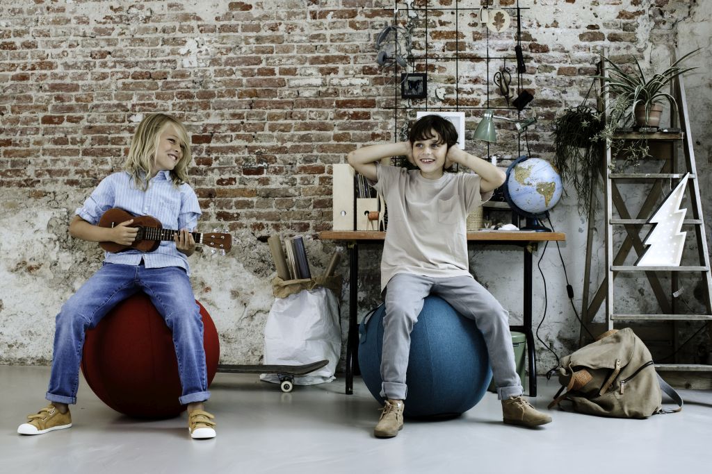 - GripME: De zitbal is makkelijk mee te nemen dankzij het geïntegreerde handvat