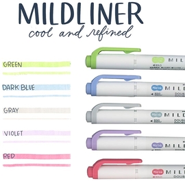 ZEBRA MILDLINER markeerstift, dubbele punt, Cool, etui van 5 stuks, in geassorteerde kleuren