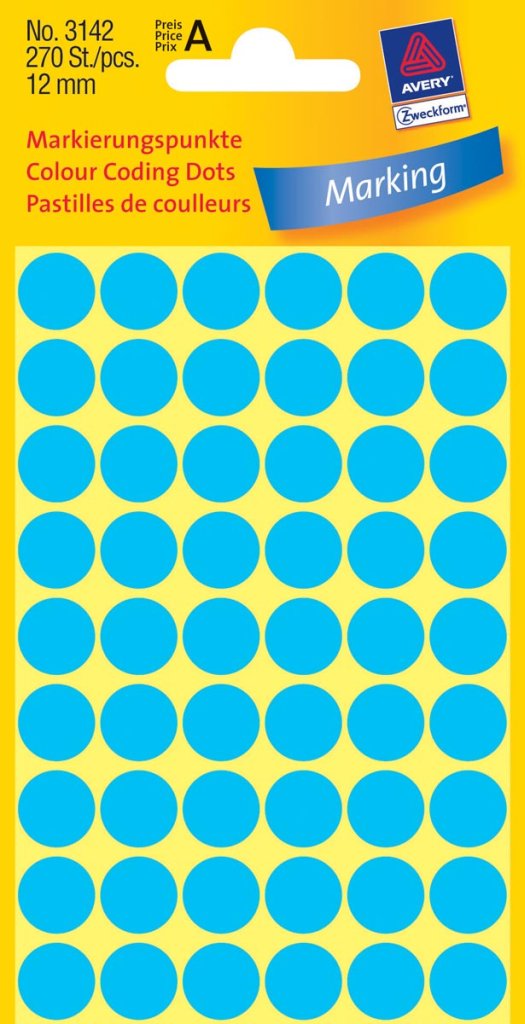 Zweckform kantooretiket rond 12 mm blauw - 270 et.