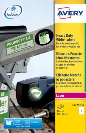 20 flles étiquettes Avery inaltérable - 1x 220/297 mm.