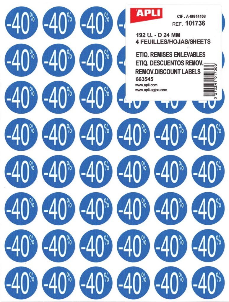 Agipa Etiquettes remises -40%, bleu, paquet de 192 pieces, e