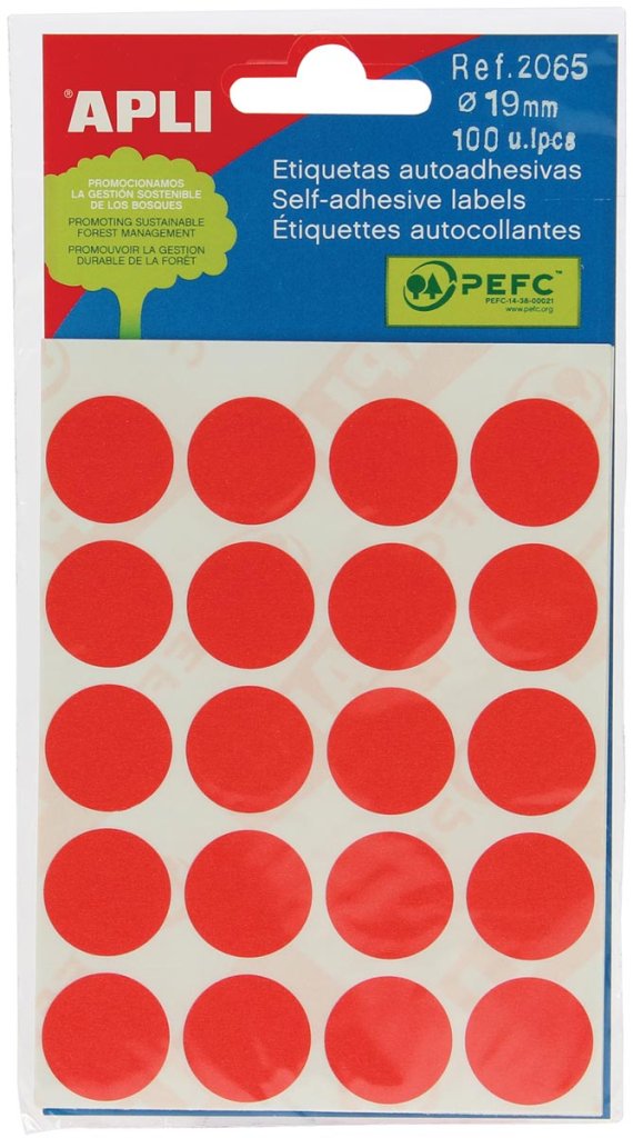 - diamètre: 19 mm, rouge, 100 pièces, 20 par feuille (2065)