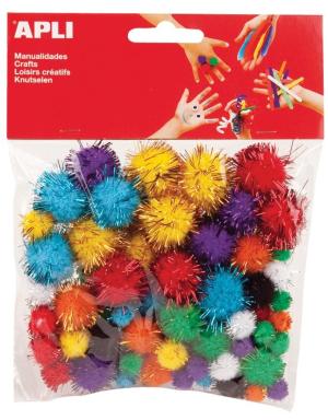 Apli pompons pailletée colorés, paquet de 78 pièces