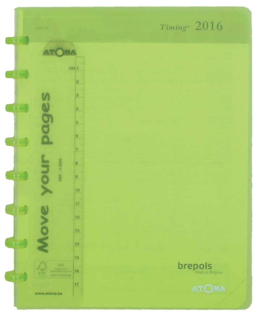 - 1 semaine par 2 pages 6 langues Papier crème de 80 g/m² Avec anneaux ATOMA Couverture en PP transparent en couleurs assorties: rouge, pourpre, vert clair, turquoise et bleu Sélection couleur impossible ft 171 x 225 mm (A5), 144 pages