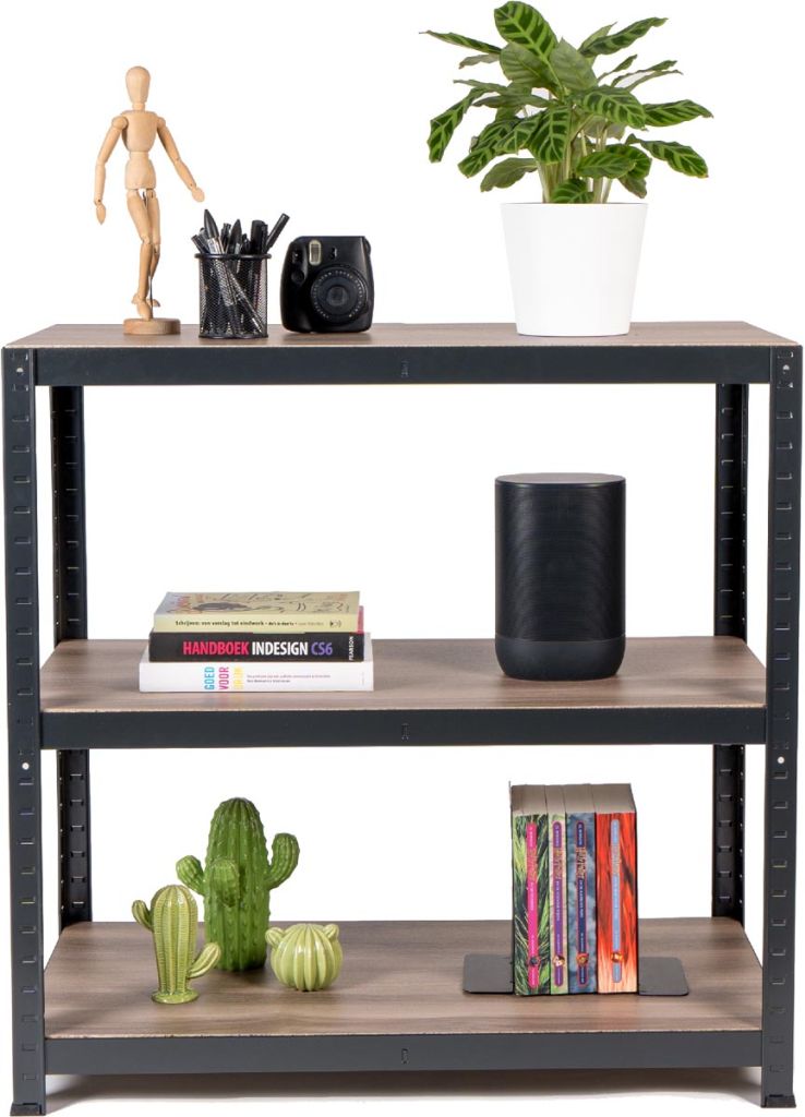 - En métal Chaque tablette supporte 175kg Tablettes réglables en hauteur Montage facile et rapide Couleur: noir Certificat: PEFC Ft 88 x 90 x 45 cm, 3 tablettes, dark oak look melamine