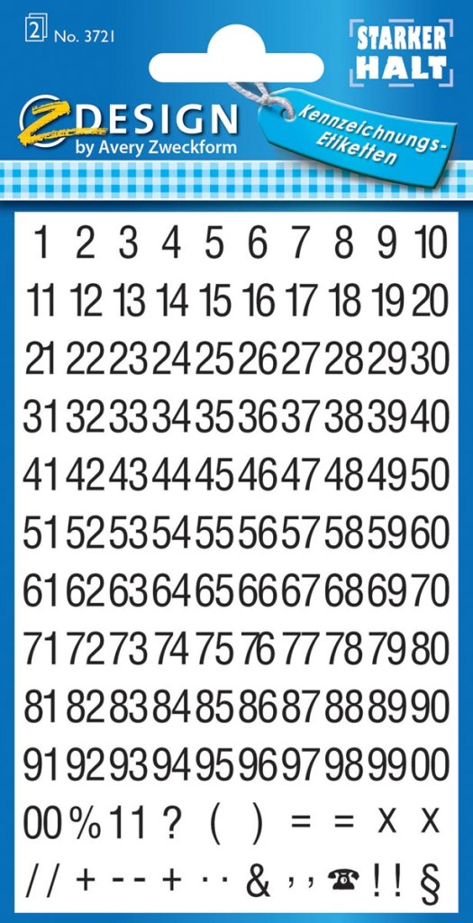 Avery étiquettes 1-100 noir SUR blanc