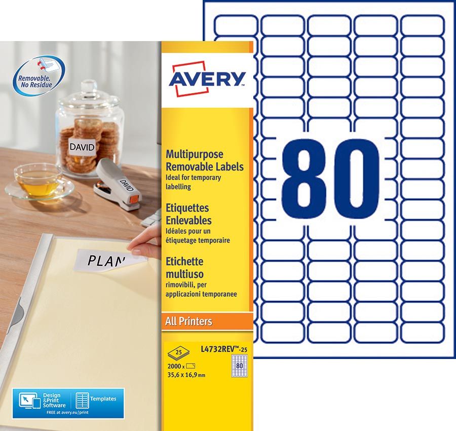 Avery étiquettes enlevables ft 35,6 x 16,9 mm, 2.000 pièces,