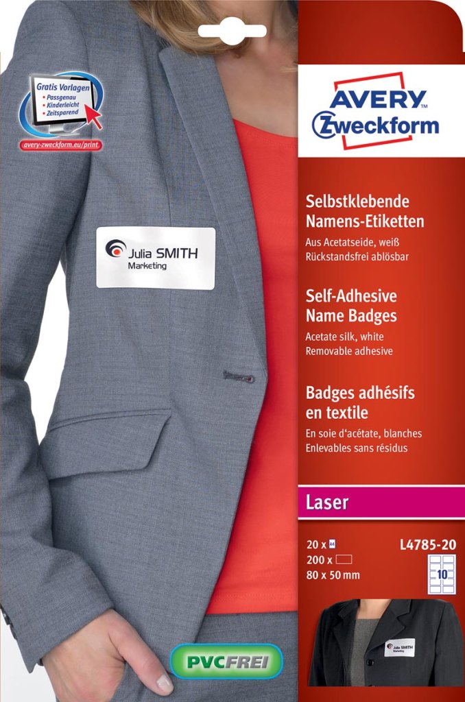 Avery naambadge etiket 80x50mm wit 20 vel (L4785)