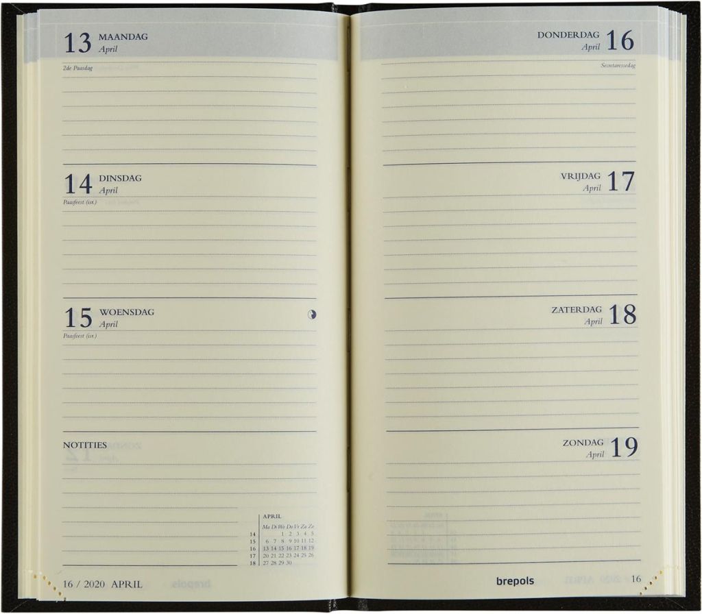 - 1 semaine sur 2 pages 1 langue: néerlandais Relié Papier crème de 60 g/m² Avec coins détachables Couverture en similicuir uni Ft 90 x 160 mm Lima, bleu