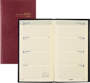 - 1 semaine sur 2 pages 1 langue: néerlandais Relié Papier crème de 60 g/m² Avec coins détachables Couverture en similicuir uni Ft 90 x 160 mm Lima, bordeaux