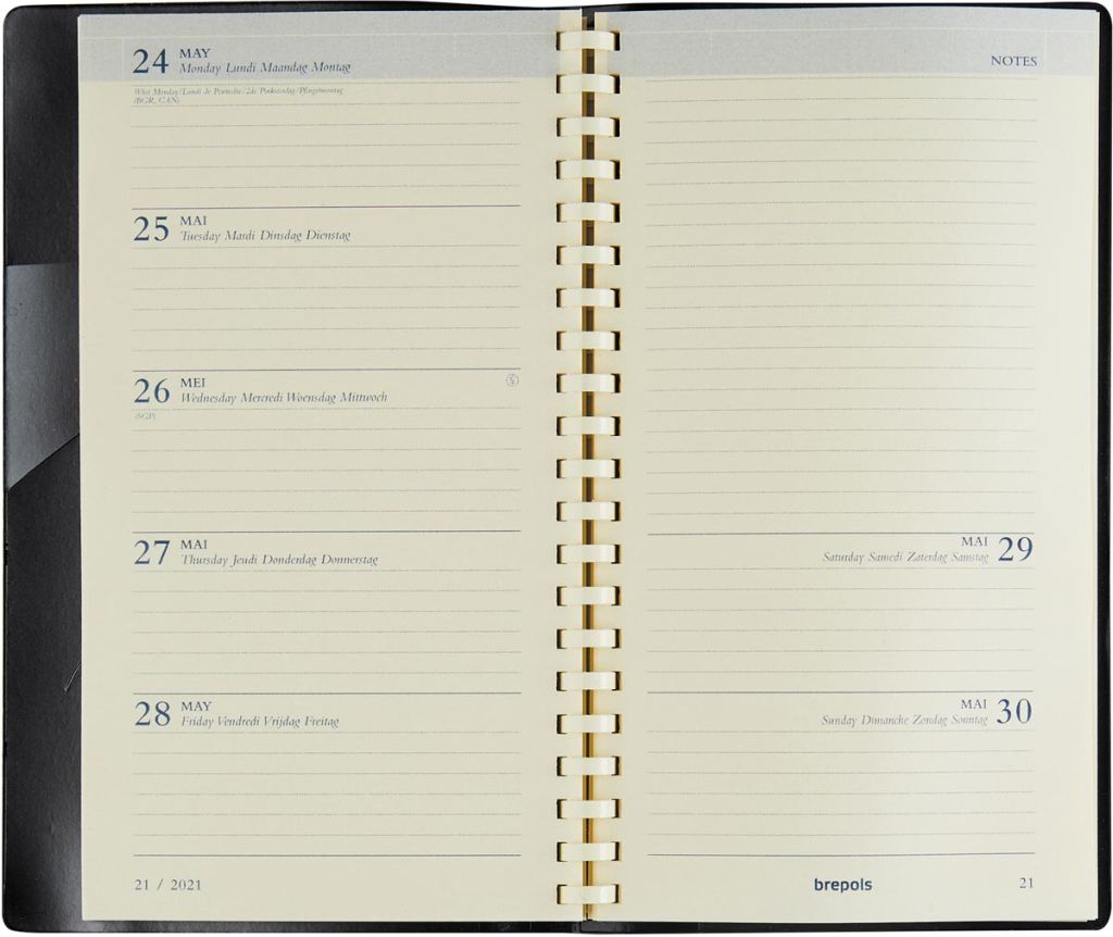 - 1 semaine sur 2 pages 4 langues A reliure spirale Avec espace pour notes sur la page droite Papier crème de 60 g/m² Avec coins détachables Couverture en similicuir finement grainé Ft 89 x 160 mm Seta, couverture en PVC lisse avec brillance de la soie, bordeaux