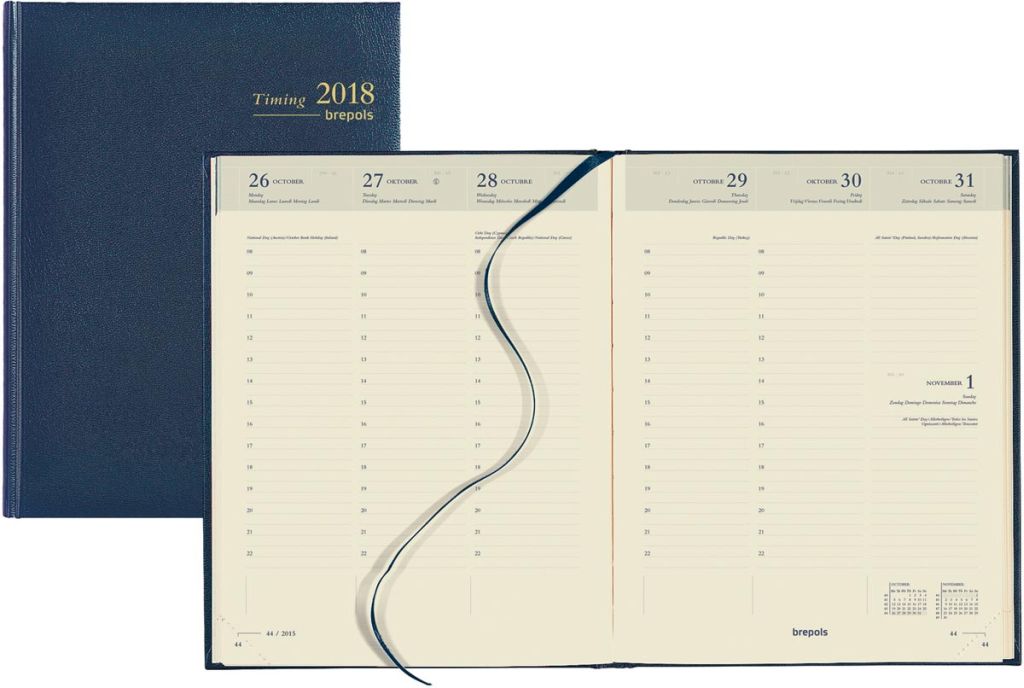 - 1 semaine sur 2 pages Par heure (8h - 22h) 6 langues Relié Papier crème de 70 g/m² Avec ruban marque-page et coins détachables Couverture en similicuir uni Ft 171 x 220 mm Certificat: FSC Mixte Lima, bleu